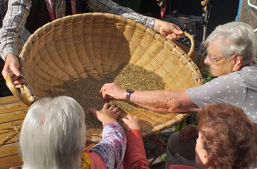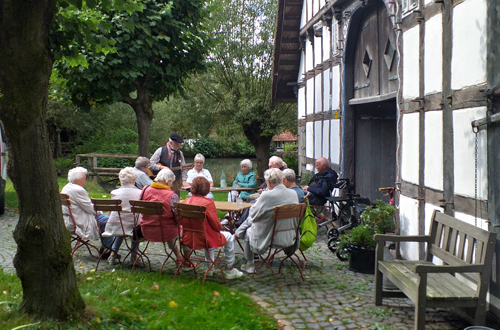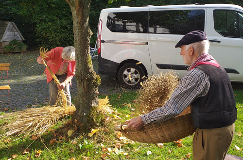 Zur Navigation Im August fuhren wieder einige Bewohnende zum Verein "Vom Korn zum Brot". Erstmal gab es eine leckere Stärkung mit selbstgebackenem Brot und Schmalz. Danach begann die "Vorführung". Unsere Bewohnenden erfuhren wie vor 100 Jahren das Korn gedroschen wurde. Anfassen war auch erlaubt!
