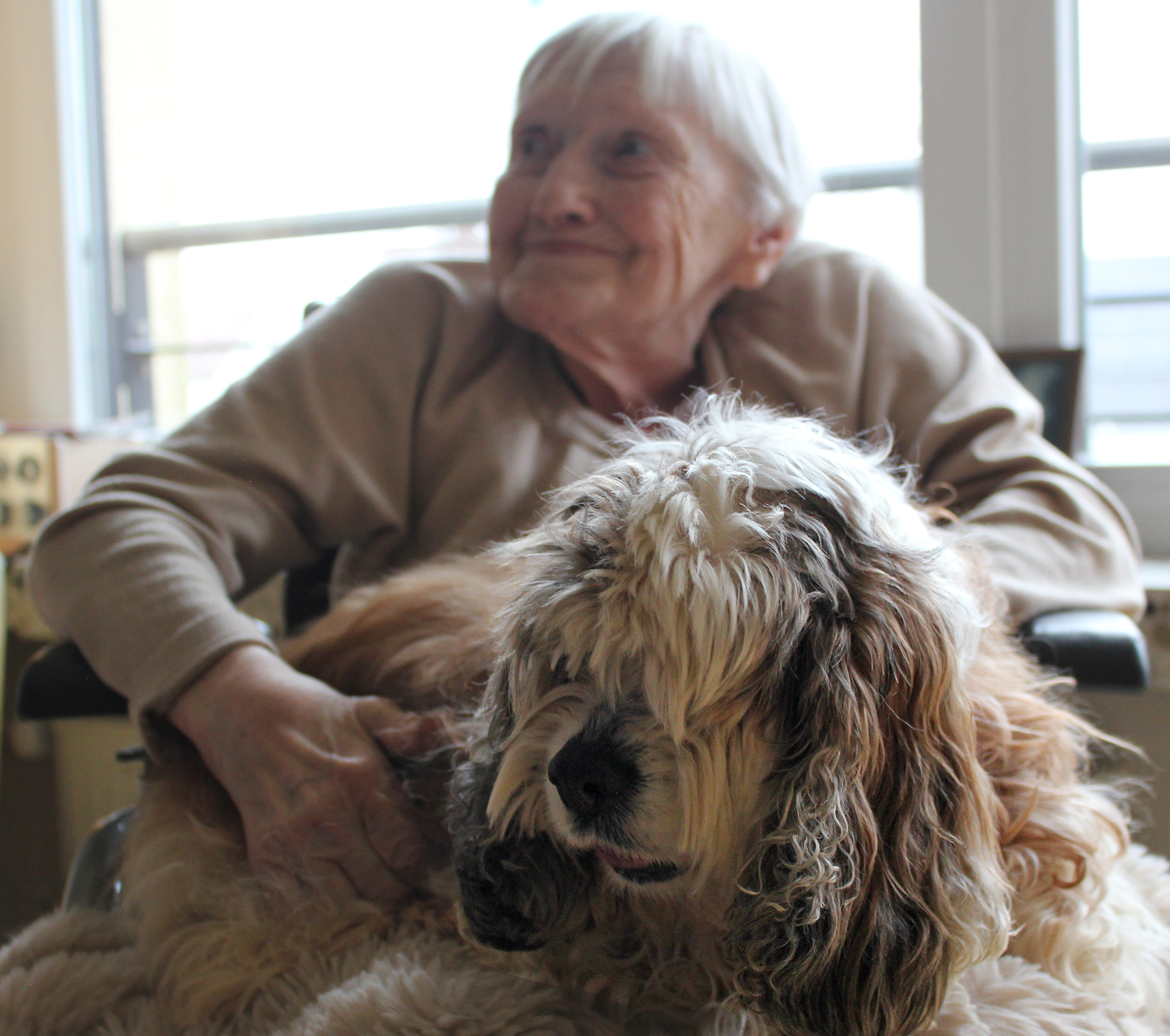 Ausgesuchte Bewohner*innen genießen dann die Aufmerksamkeit der Hunde. Ob Kuscheln im Bett oder eine Krauleinheit, dass entscheiden die Bewohnenden von sich aus.