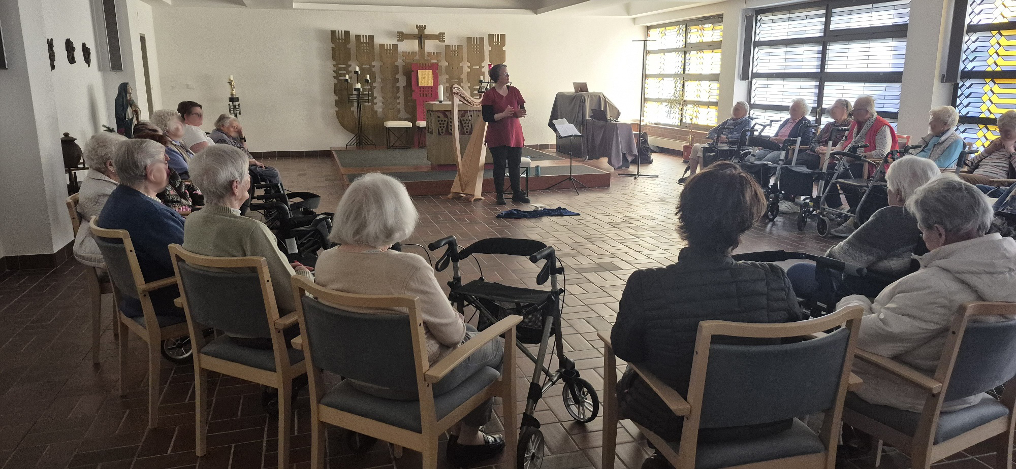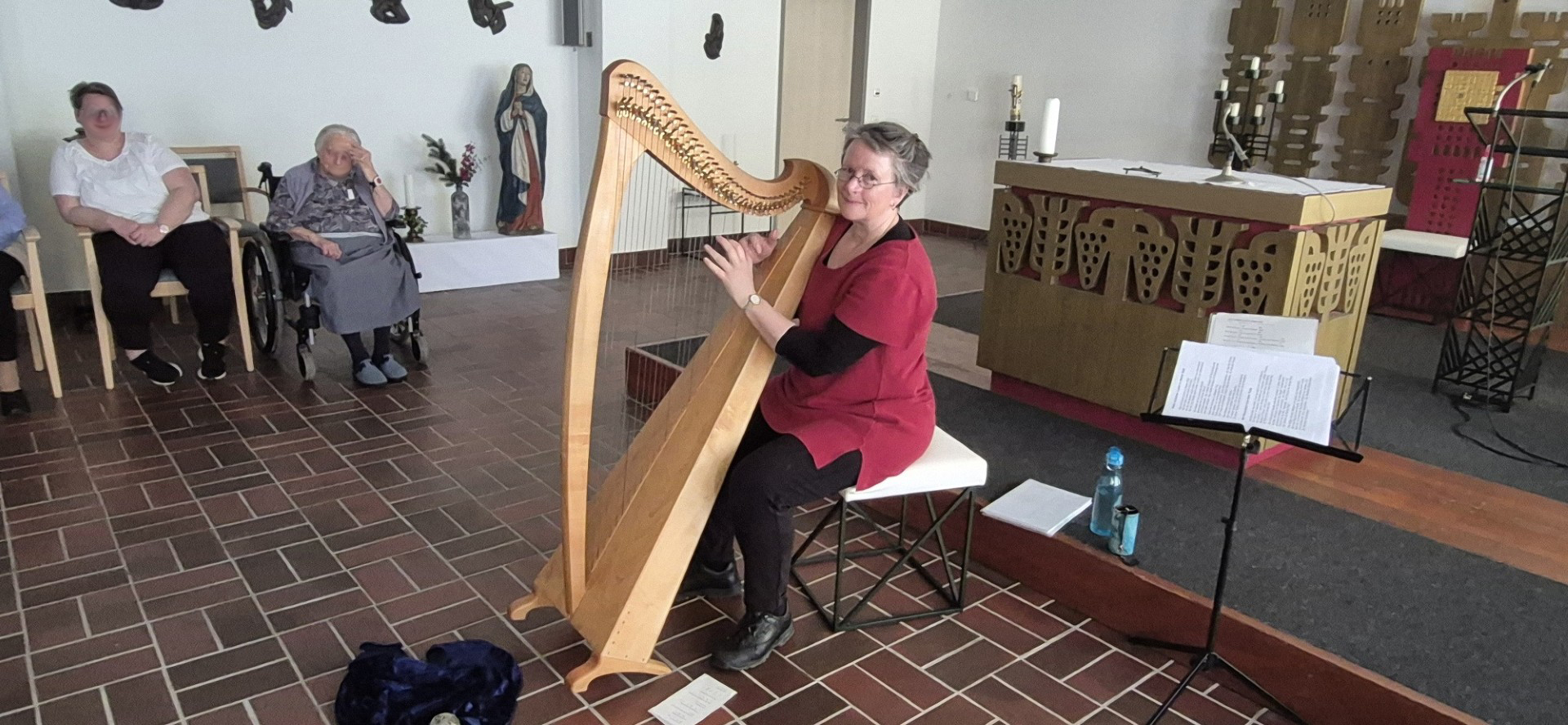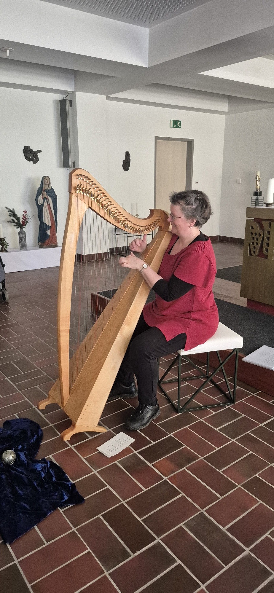 Frau Michaela Brinkmeier ist unter anderem eine ausgebildete Klangtherapeutin und besuchte uns mit ihrer Harfe.